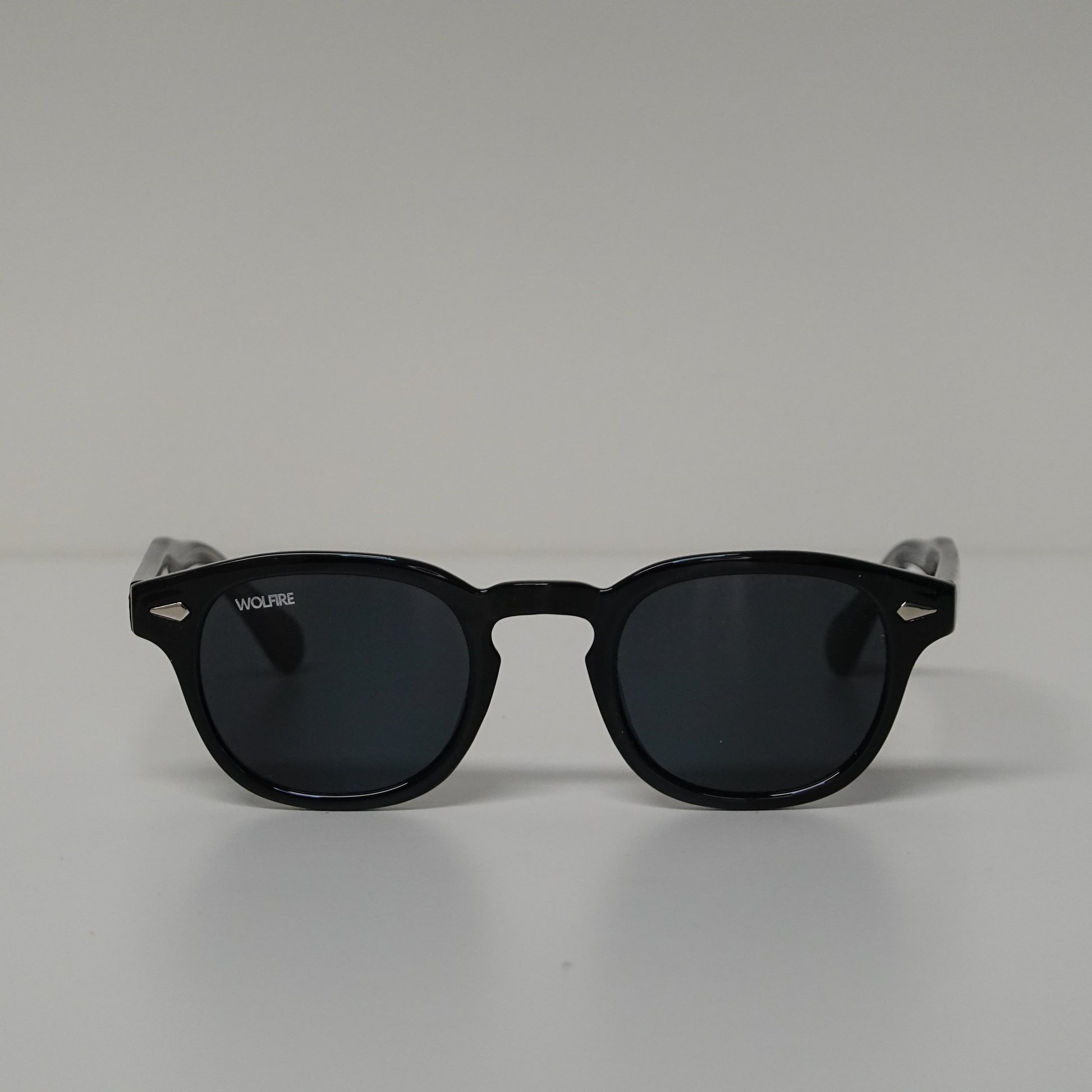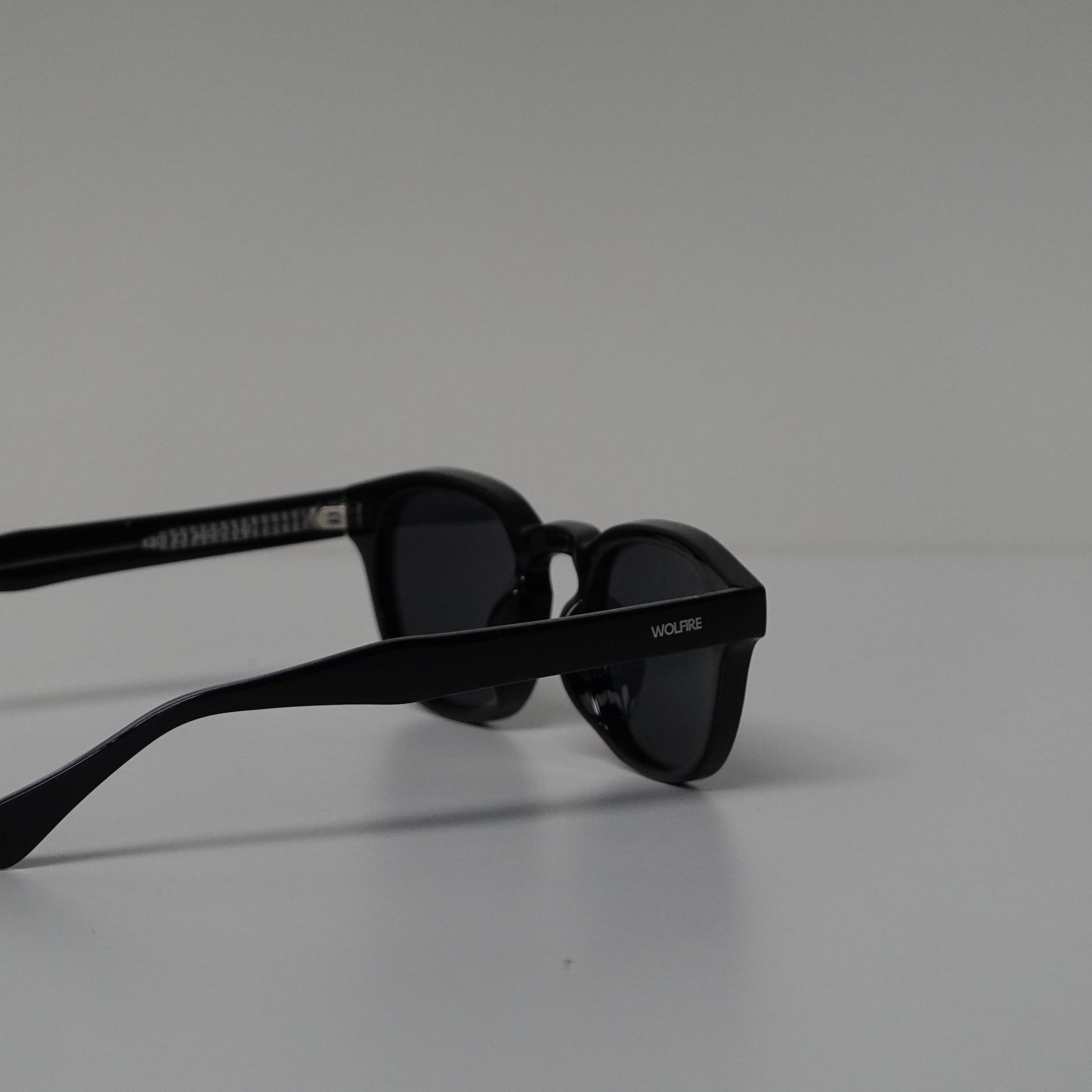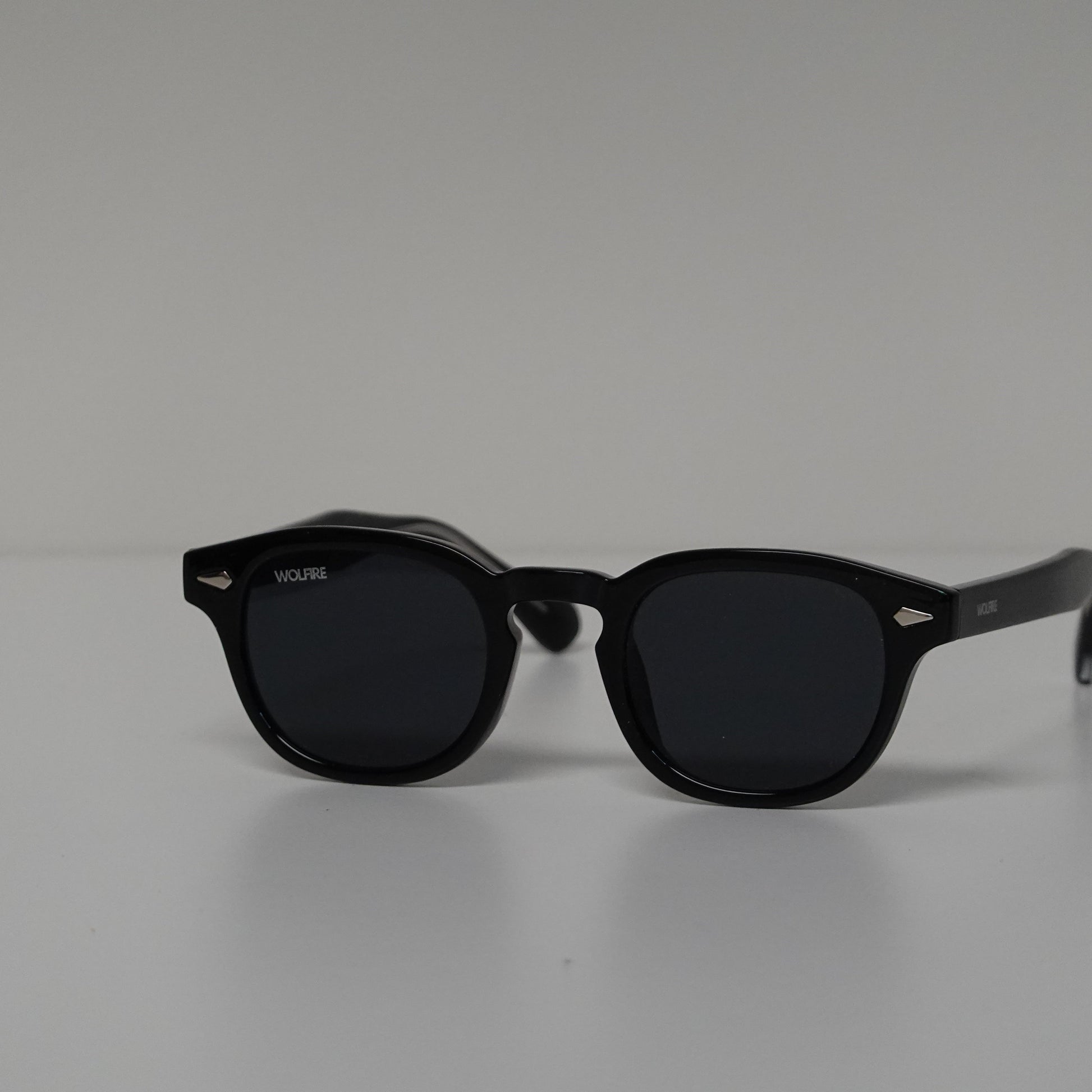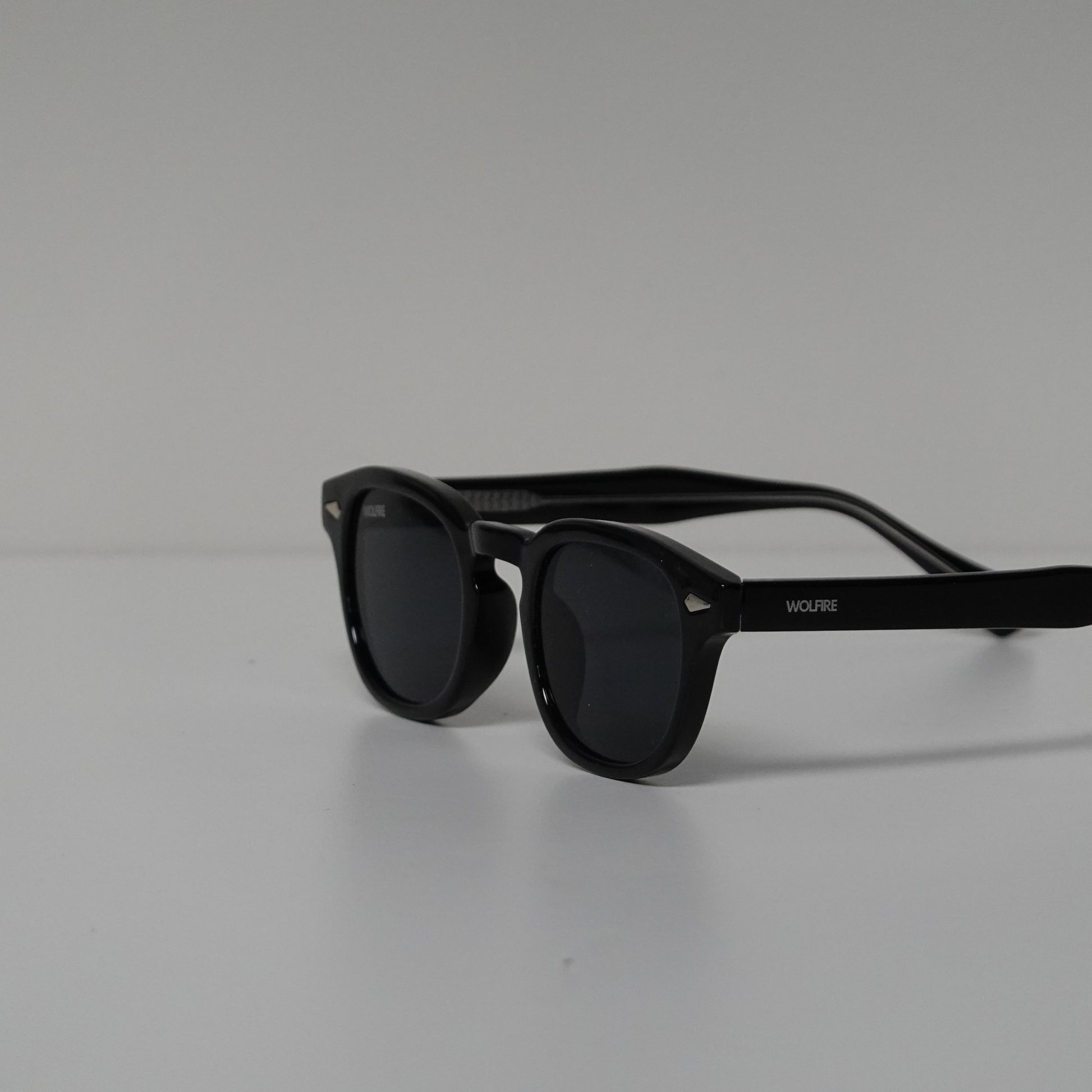 Classic matte black frames with dark lenses, chic Wolfire sunglasses, UV protection, lightweight, perfect for a timeless, sophisticated style.